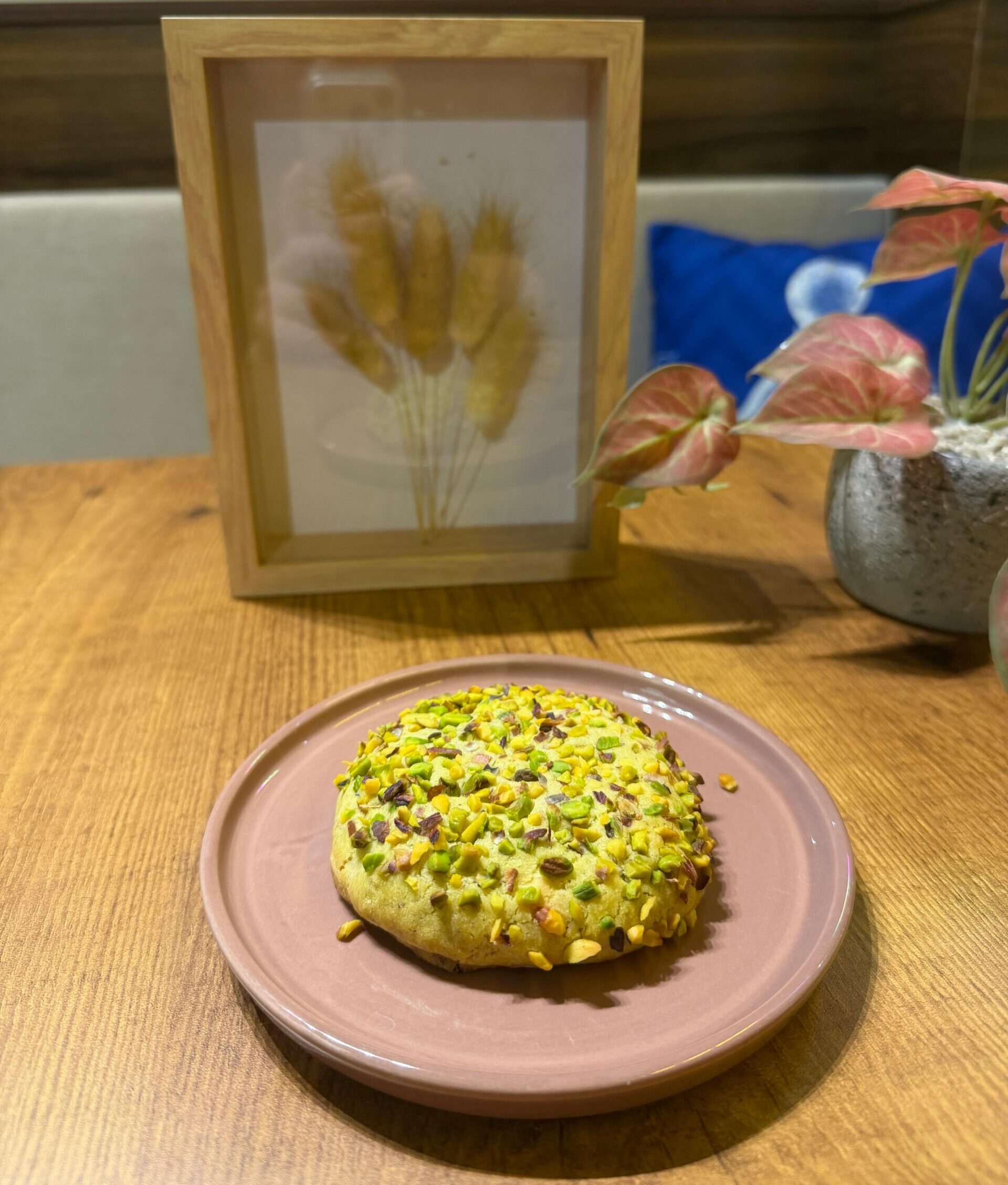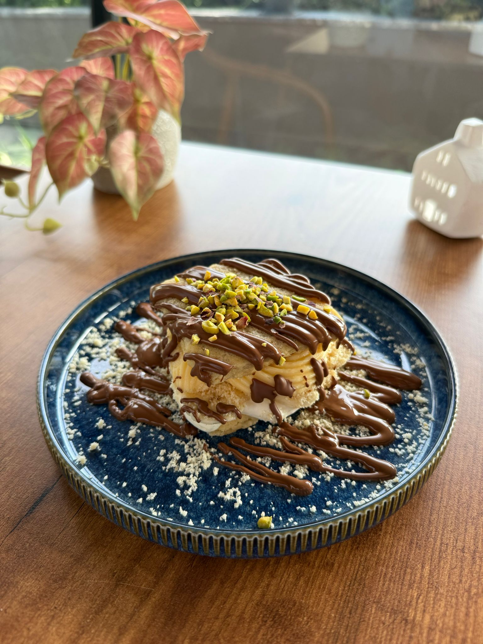 Özel bir tarif; Dışı çıtır, içi yumuşacık hamur, içerisine özel krema, fıstık tozu ve yoğun gerçek Belçika çikolatasıyla…